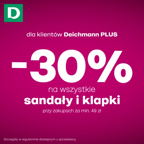 Teraz w DEICHMANN wszystkie sandały i klapki przy zakupach za min. 49 zł dla klientów Deichmann PLUS z rabatem 30%!