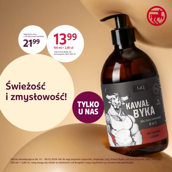 · świeży i zmysłowy żel pod prysznic LAQ Kawał Byka (w tym tygodniu tylko 13,99 zł);